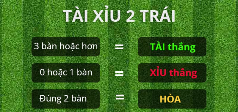 - Số bàn thắng là 0, 1, 2 thì Tài thua hết, Xỉu thắng hết