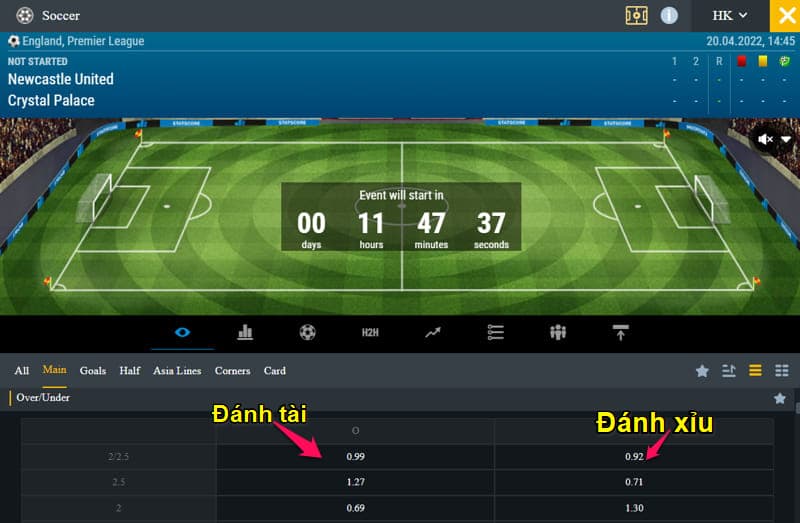 Đây chính là việc dự đoán kết quả trận đấu cao hơn (Tài) hay thấp hơn (Xỉu) so với con số mà nhà cái đưa ra.