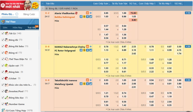 - Hòa 0 – 0 -> cửa Xỉu thắng